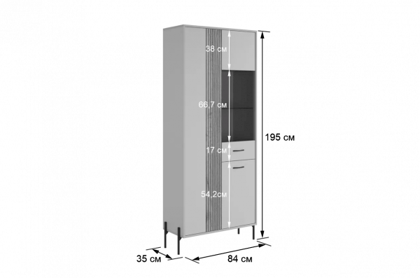 Вторая дверь, выполненная со стеклянной вставкой, позволяет демонстрировать коллекции, декоративные предметы или книги, придавая вашему пространству дополнительный шарм и элегантность.
