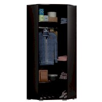 Створка шкафа может вешаться как на правую, так и на левую сторону. Шкаф имеет секцию с металлической штангой и полками.