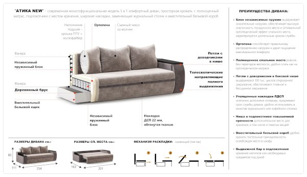 Диван Атика (Империал) продается в интернет-магазине mebel-online-murom.ru по цене 69 362 руб. Есть доставка по Мурому и Владимирской области. Возможность подъема на этаж и сборки уточняйте у менеджера по телефону 8(800)505-27-11.